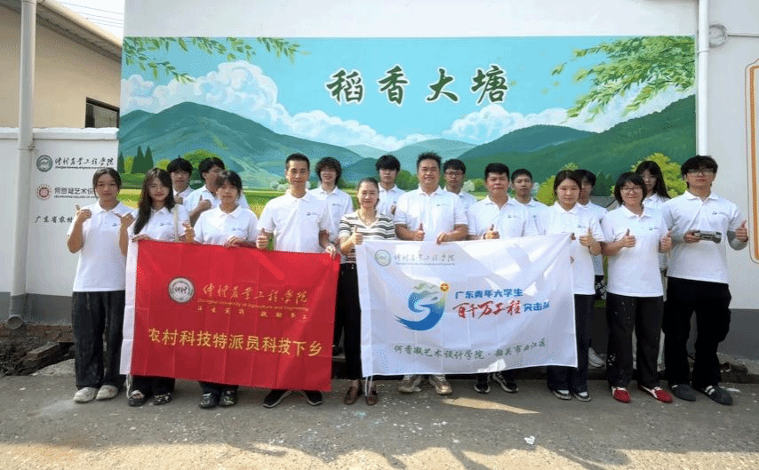 为深入实施乡村振兴战略,引领青年大学生凝心聚力助力“百千万工程”高质量发展。2025年7月10日至17日,仲恺农业工程学院何香凝艺术设计学院环境设计许树贤副教授、视觉传达翁羽生老师,联合园艺园林学院特聘副教授罗红辉老师,并特邀创业校友黄兴业参与指导,共同率领何香凝艺术设计学院16名大学生组成的“绿芒万丈”百千万工程青年突击队,深入赴韶关市曲江区大塘镇,成功开展农村科技特派员技术服务和大学生社会实践,以青春智慧与汗水赋能乡村振兴。