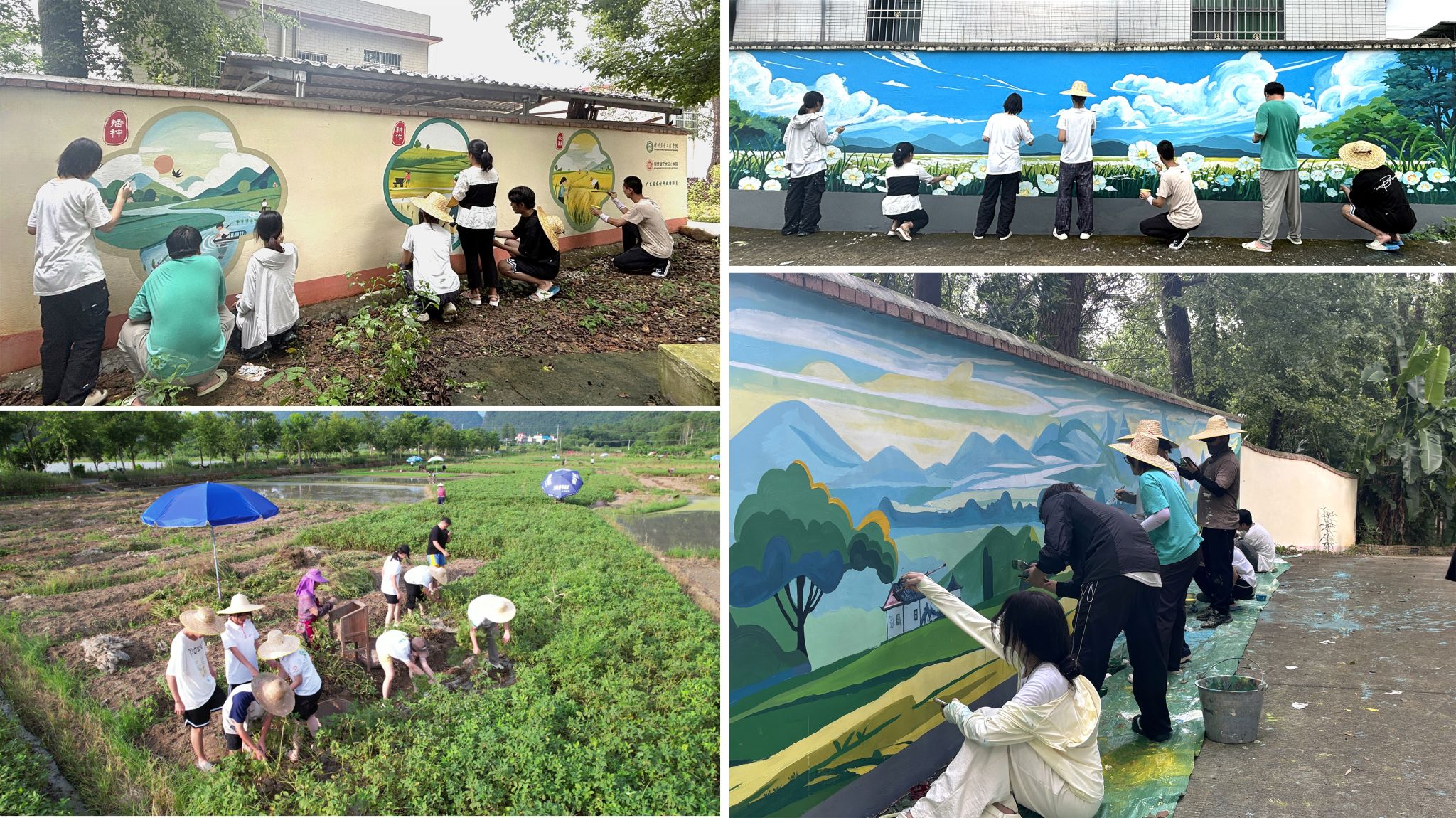 自2024年盛夏农村科技特派员签约以来,我校许树贤特派员团队持续为大塘镇提供专业支撑:从绿美乡村设计、大塘镇品牌策划,到食用菌大棚种植、水稻种植与田间管理,科技赋能覆盖全链条。连续两年带领学生突击队开展墙绘实践,使科技兴农与文化润心深度融合。这份深情厚谊正悄然重塑大塘的乡村肌理,让“百千万工程”的果实愈发丰硕可感。