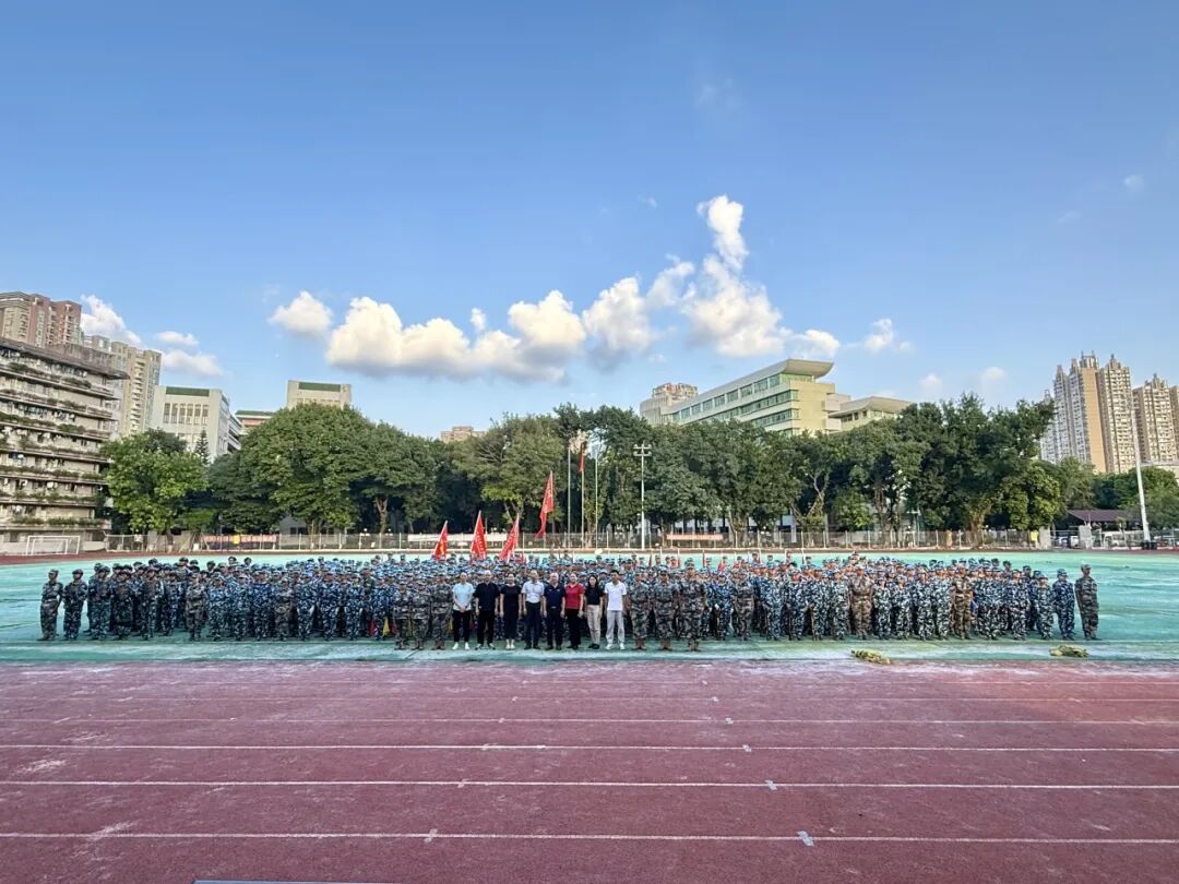 何香凝艺术设计学院党委书记韦松林、人文与社会科学学院党委书记吴小玲、人工智能学院党委书记熊友华、何香凝艺术设计学院党委副书记李欢及三学院辅导员老师参加活动,与新生共同见证训练成果。