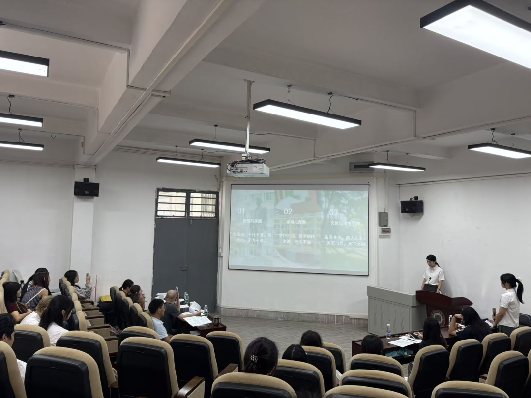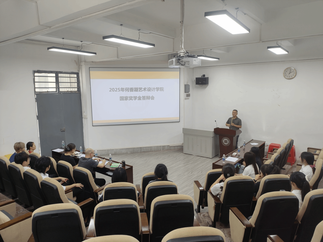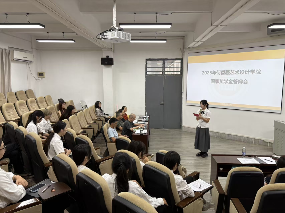 为扎实做好国家奖学金评选工作,树立优秀学生典型,推动优良学风形成,何香凝艺术设计学院于9月26日在艺设楼101举办了2025年国家奖学金答辩会。学院党委副书记李欢,副院长尧优生及各年级辅导员出席并担任评委,各年级学生代表到场观摩。