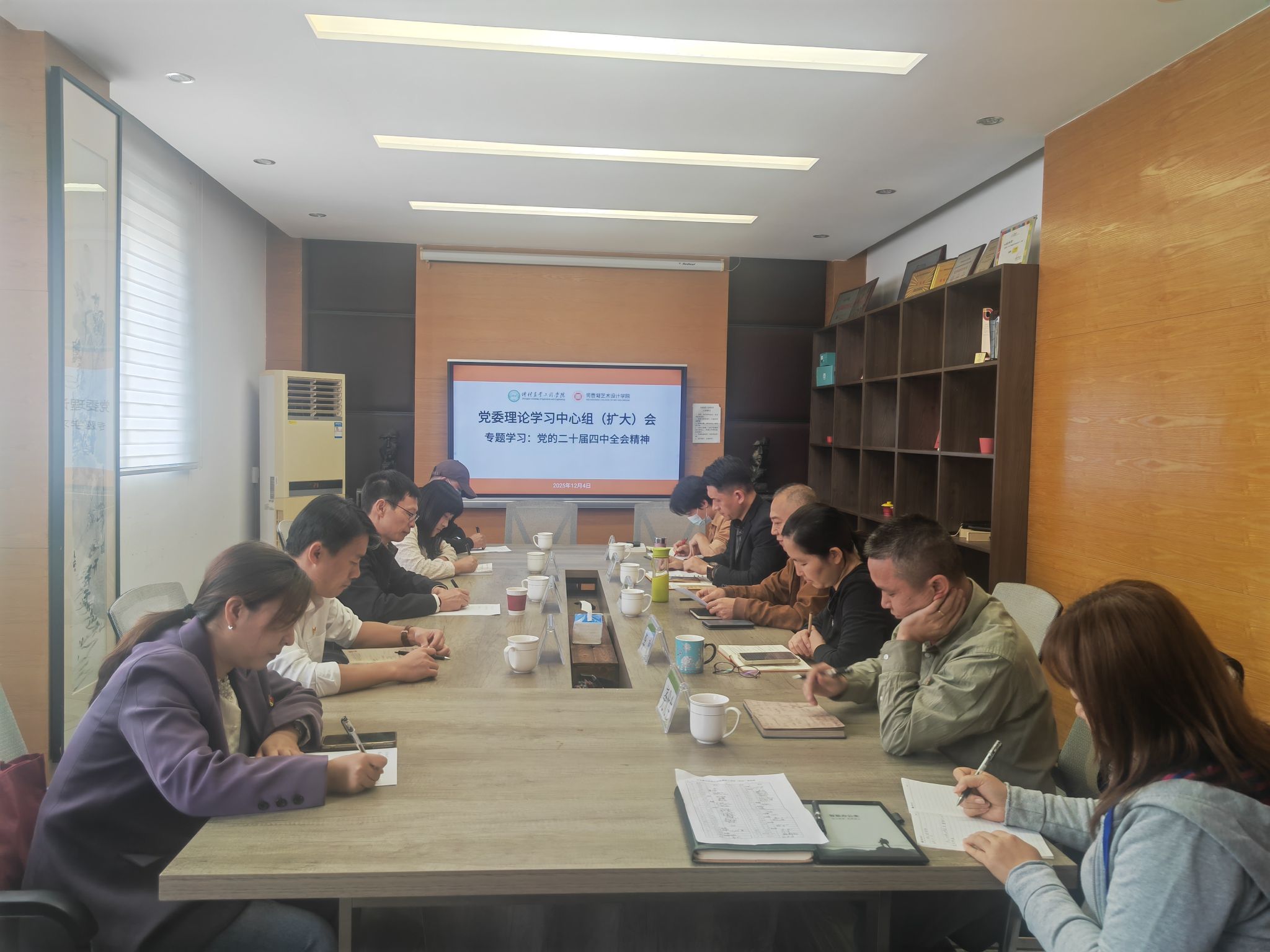 为深入学习贯彻党的二十届四中全会精神,切实把思想和行动统一到党中央决策部署上来,12月5日,何香凝艺术设计学院党委召开二级中心组理论学习(扩大)会议,并结合师生理论专题学习会开展辅导报告学习活动,学校党委副书记朱立学,理论学习旁听督查工作第二检查组梁其才,龚慧枫等全程参加会议。