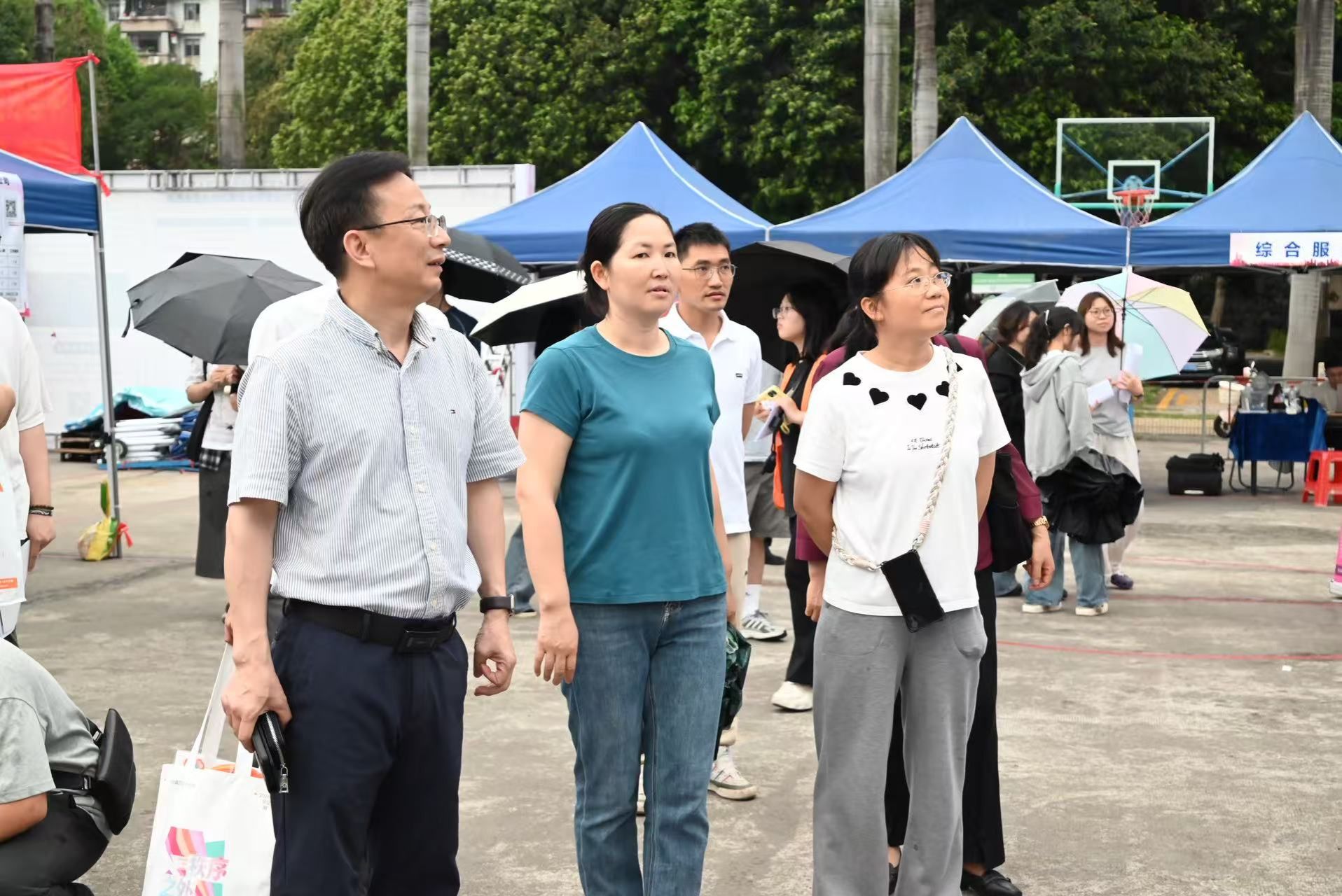 学校高度重视此次招聘会,提前统筹部署各项工作。学生工作党委书记、学生工作部(武装部)部长李伟东,何香凝艺术设计学院党委书记韦松林、副院长(主持工作)熊强、副书记李欢,人文与社会科学学院党委书记吴小玲、副书记李静带领两学院各系主任及全体辅导员深入会场,与企业代表交流行业发展趋势与人才需求标准,同时为求职学生提供针对性指导,鼓励毕业生主动展现专业优势。