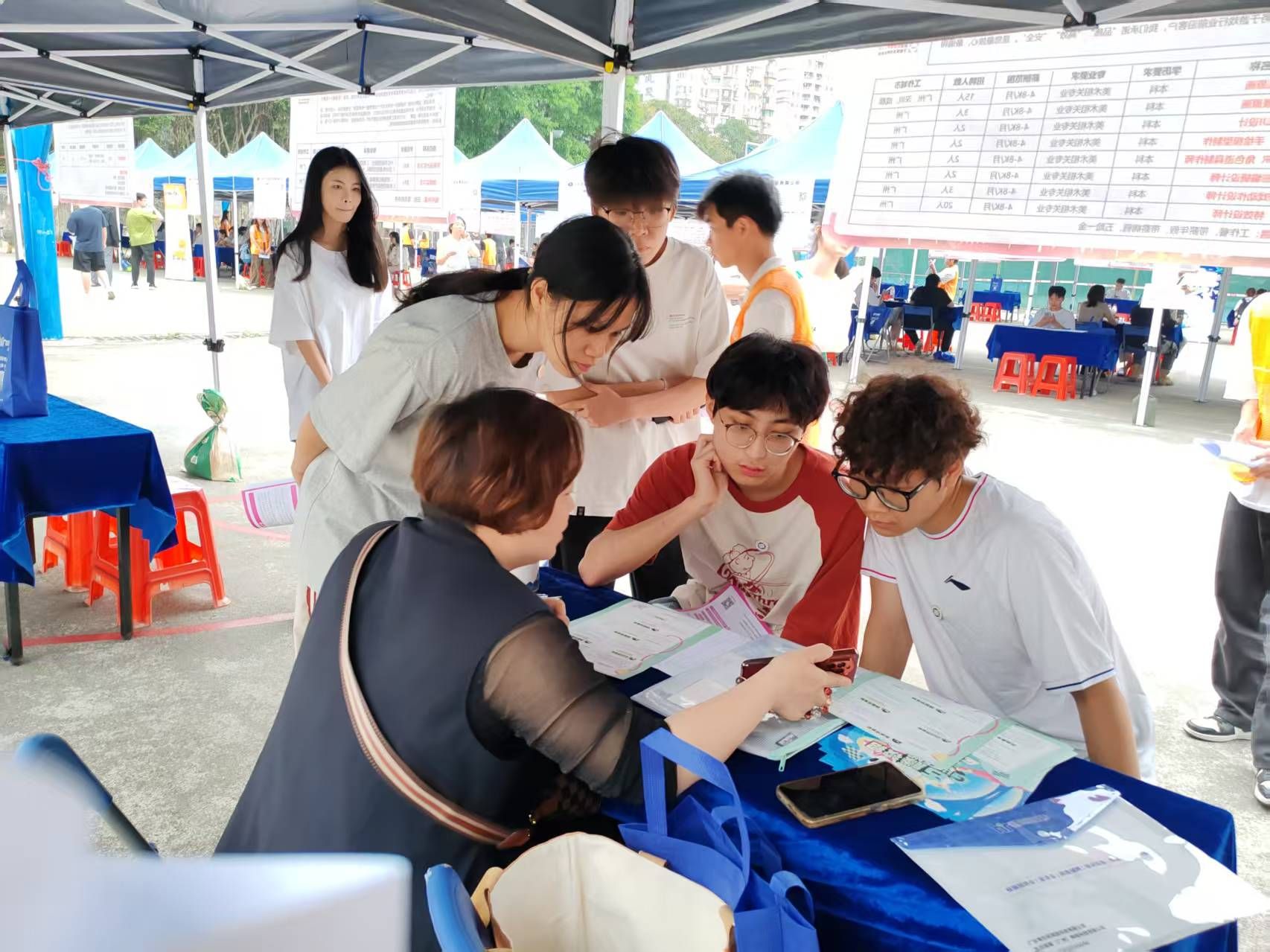 招聘现场气氛热烈,人头攒动。广东树华科技咨询服务有限公司、广州古藤动漫科技有限公司、广州叁川传媒广告有限公司等企业展位前咨询者络绎不绝。毕业生手持创意简历与作品集,部分学生通过动态简历二维码、3D作品集等创新形式展示专业素养,与用人单位深入洽谈。据统计,本场招聘会线上线下共收到毕业生投递简历410余份,初步达成就业意向78人,招聘成效显著。