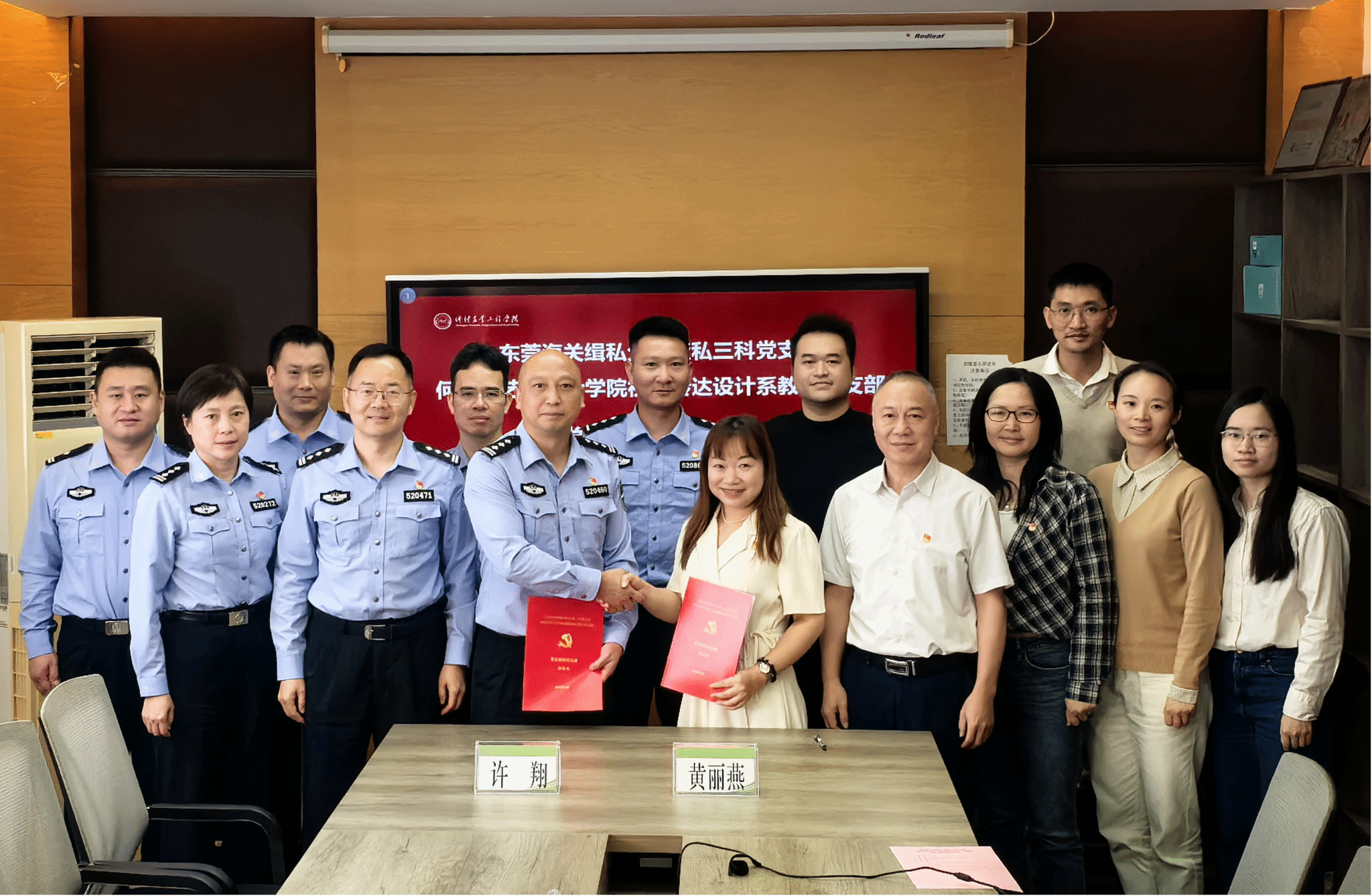 4月1日下午,何香凝艺术设计学院视觉传达设计专业教工党支部与东莞海关缉私分局查私三科党支部在艺术楼207会议室举行党建共建签约仪式。双方党支部党员共同参加,仪式由学院视觉传达设计专业教工党支部书记黄丽燕主持。